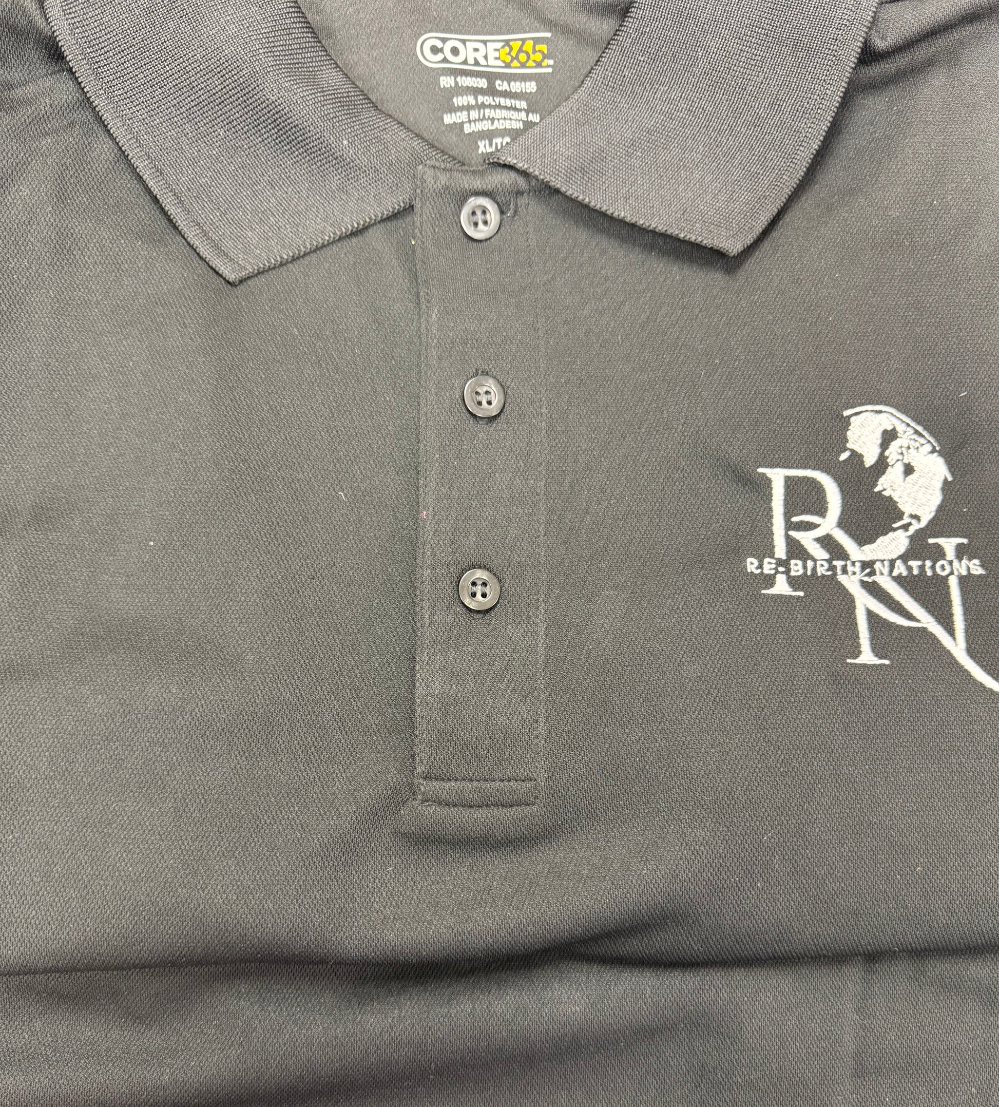 Rebirth Apostolic Ministry's Embroidered Black Leadership Polo. Made from Dri-Fit material.