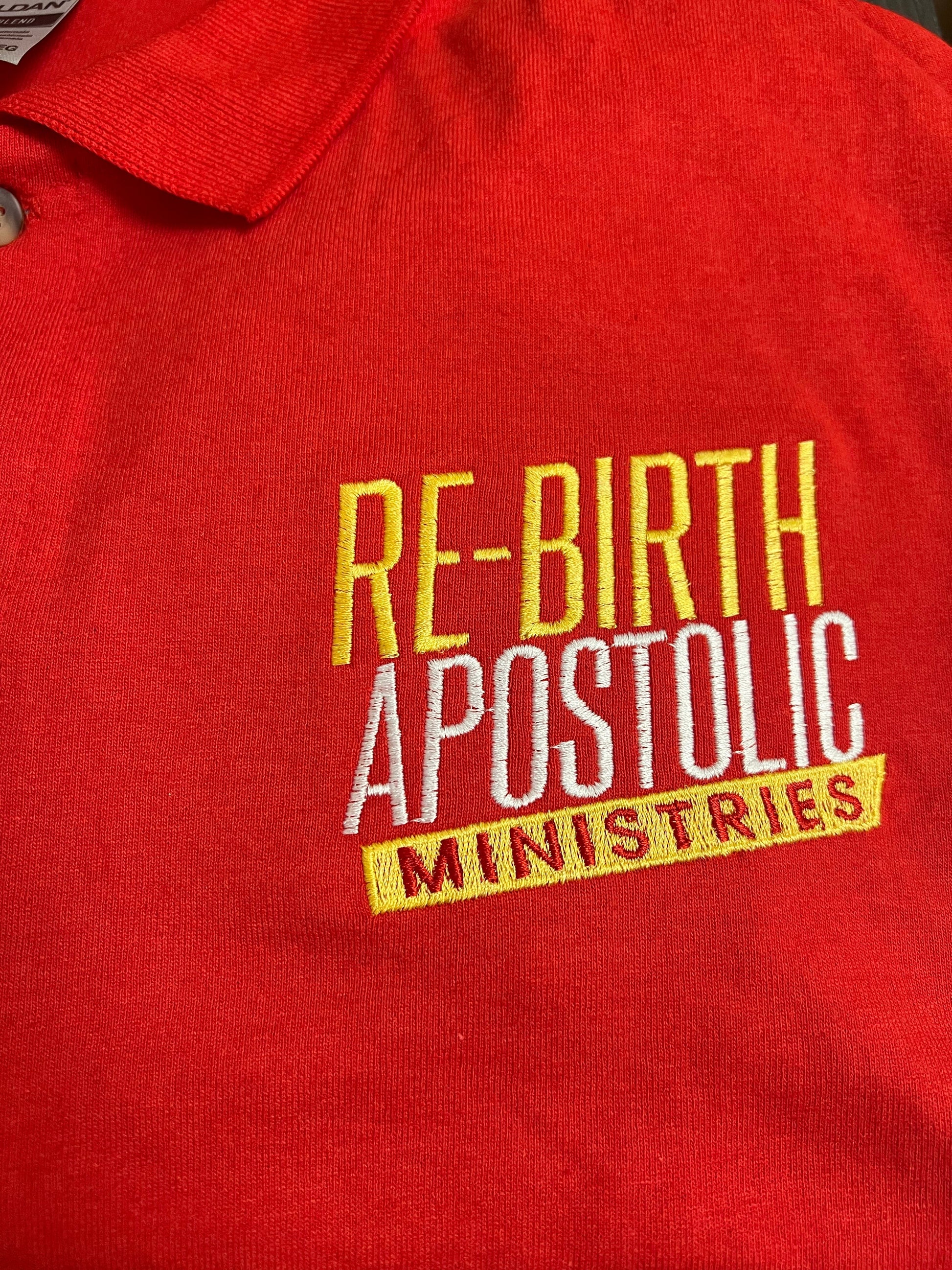 Re-Birth Apostolic Ministry's Red Usher Polos, made from Dri-Fit material.